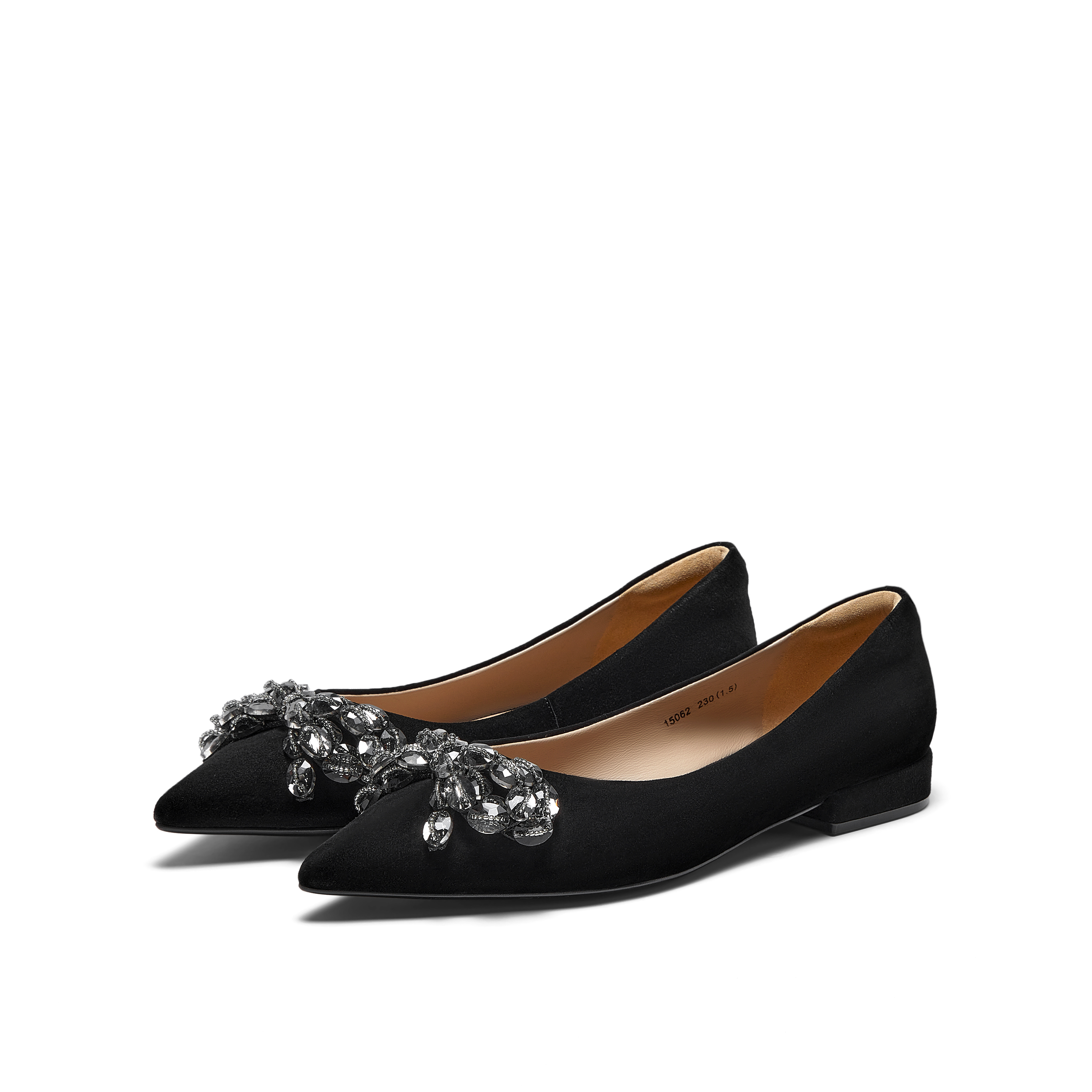 真美诗新款 女15062CQ3 复古羊皮绒面水钻蝴蝶结通勤单鞋