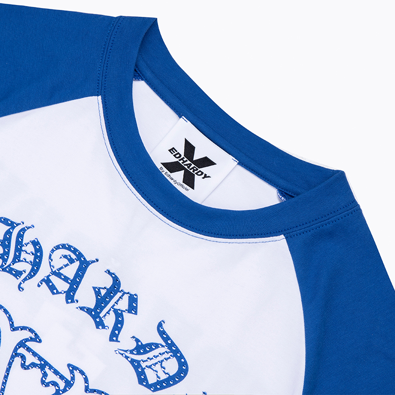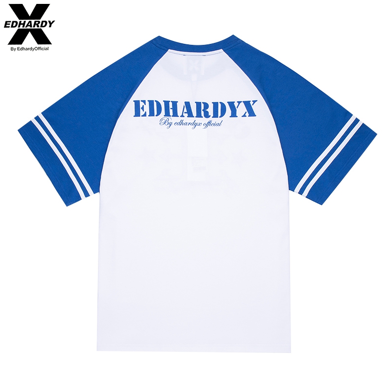 圆领国潮重磅情侣短袖 烫钻学院风撞色插肩袖 T恤 新款 EdHardyX夏季