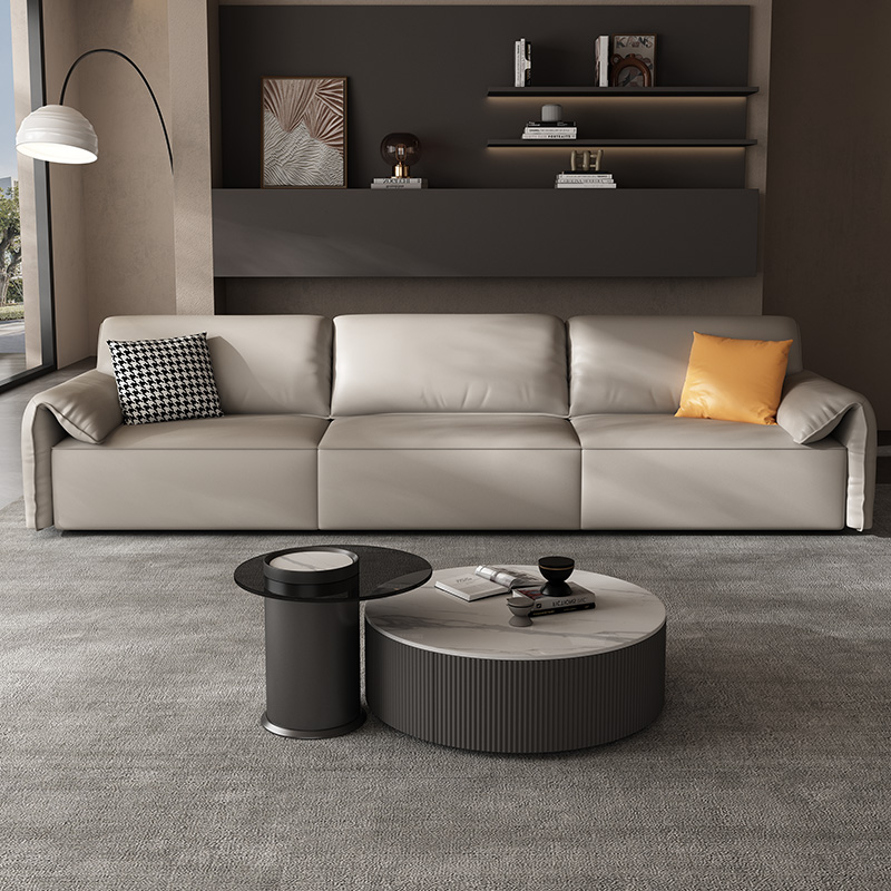 法莎蒂现代奶油风大象耳朵真皮沙发小户型意式 极简皮艺直排沙发