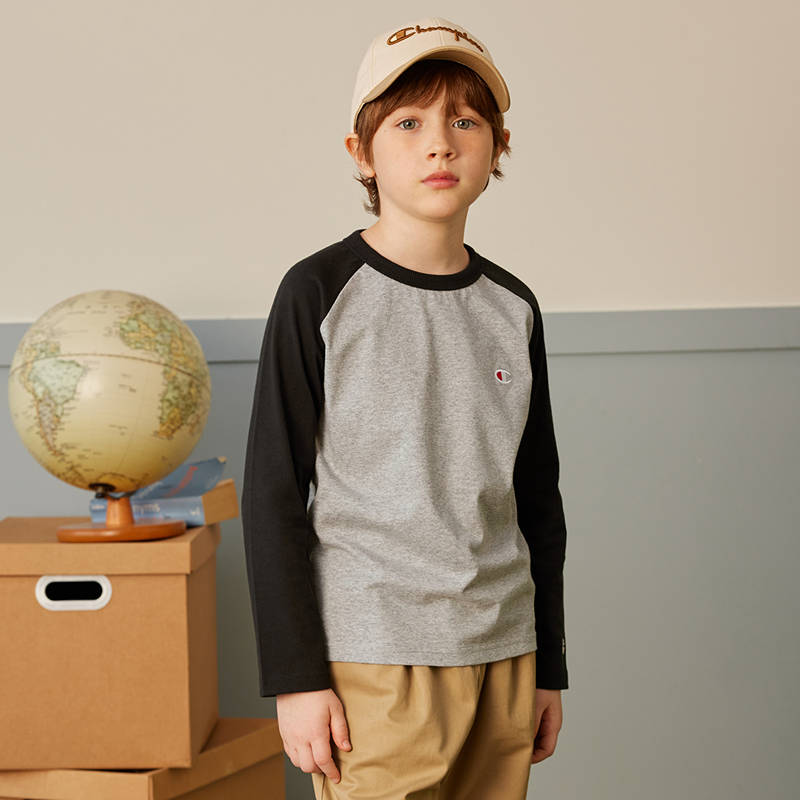 T恤 亲子插肩舒适休闲简约长袖 Champion冠军男女大小童25秋季 新款