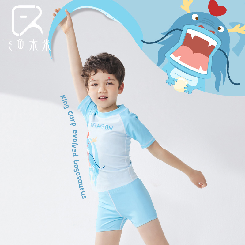 飞鱼未来儿童泳衣男童分体短袖 水上乐园防晒沙滩游泳衣 平角游泳裤