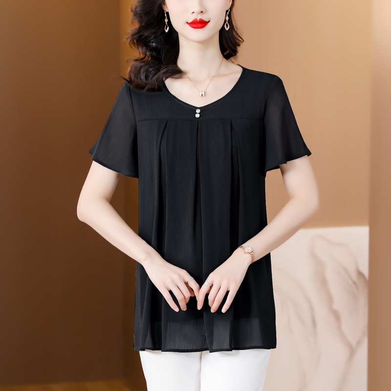 中长款 宽松遮肚妈妈上衣200斤胖MM小衫 雪纺衫 短袖 女2025夏装 大码