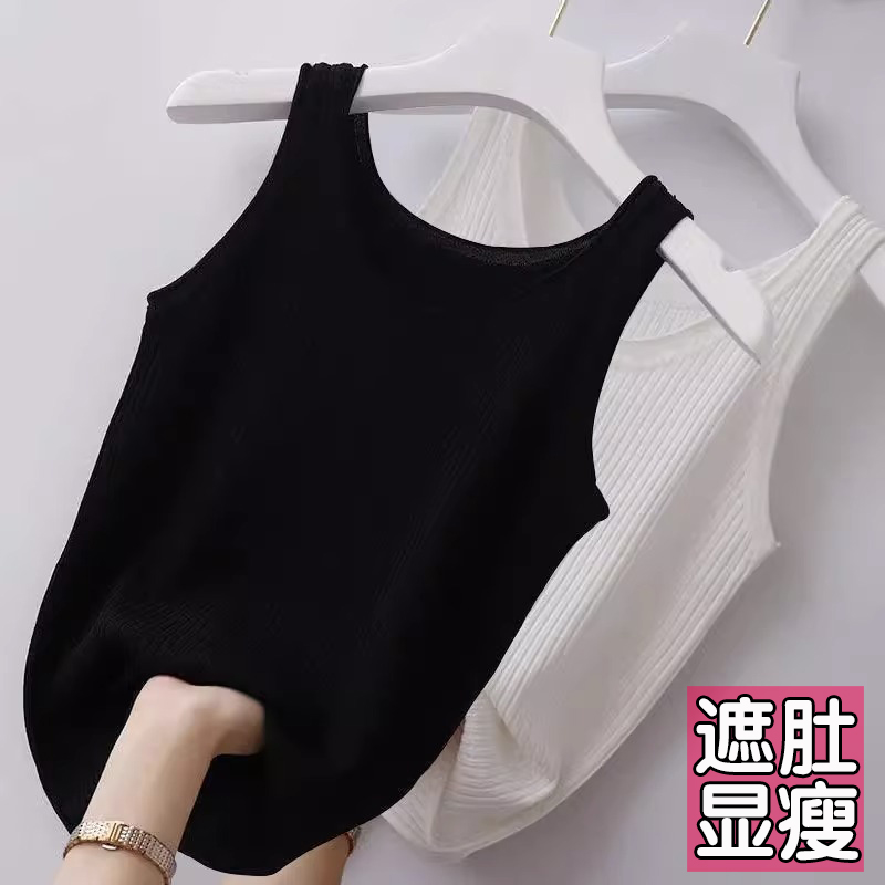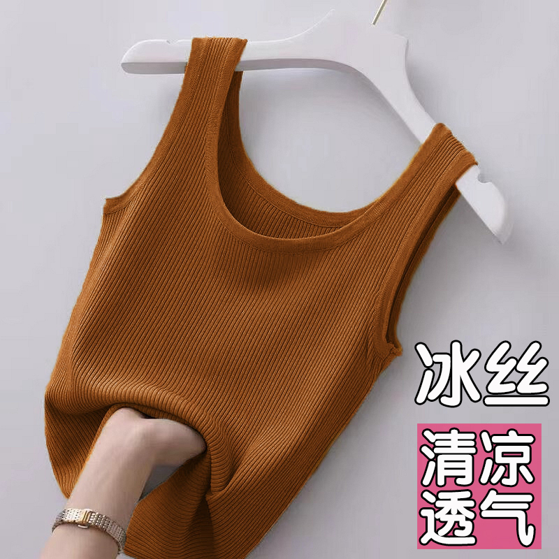 女内搭外穿宽肩带针织打底上衣胖mm夏季 大码 冰丝吊带背心2025新款