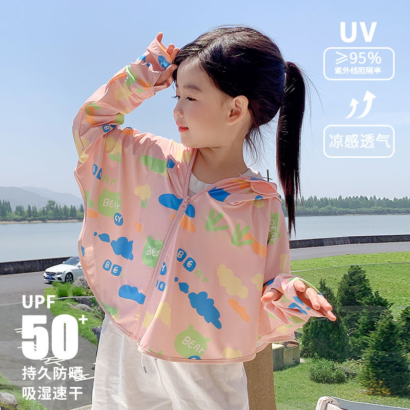 小黄鸭品牌儿童防晒衣女童冰丝防晒服2025新款 遮阳防紫外线大帽檐