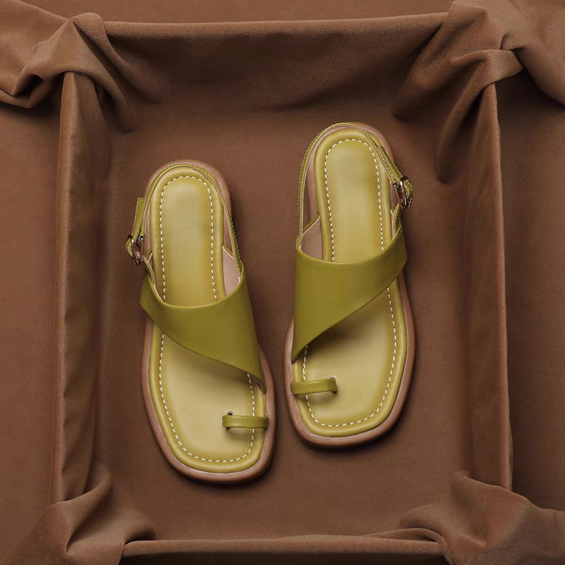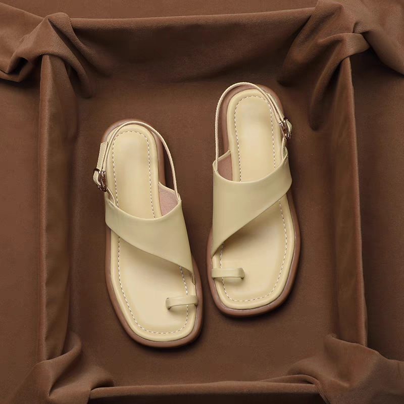百搭后绊带低跟女鞋 悉森时尚 新款 女2025年夏季 子 休闲套趾软皮凉鞋
