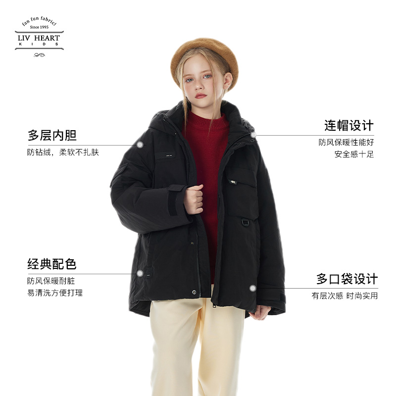 儿童户外白鸭绒保暖外套 羽绒服2025新款 日本LIV童装 女童连帽工装
