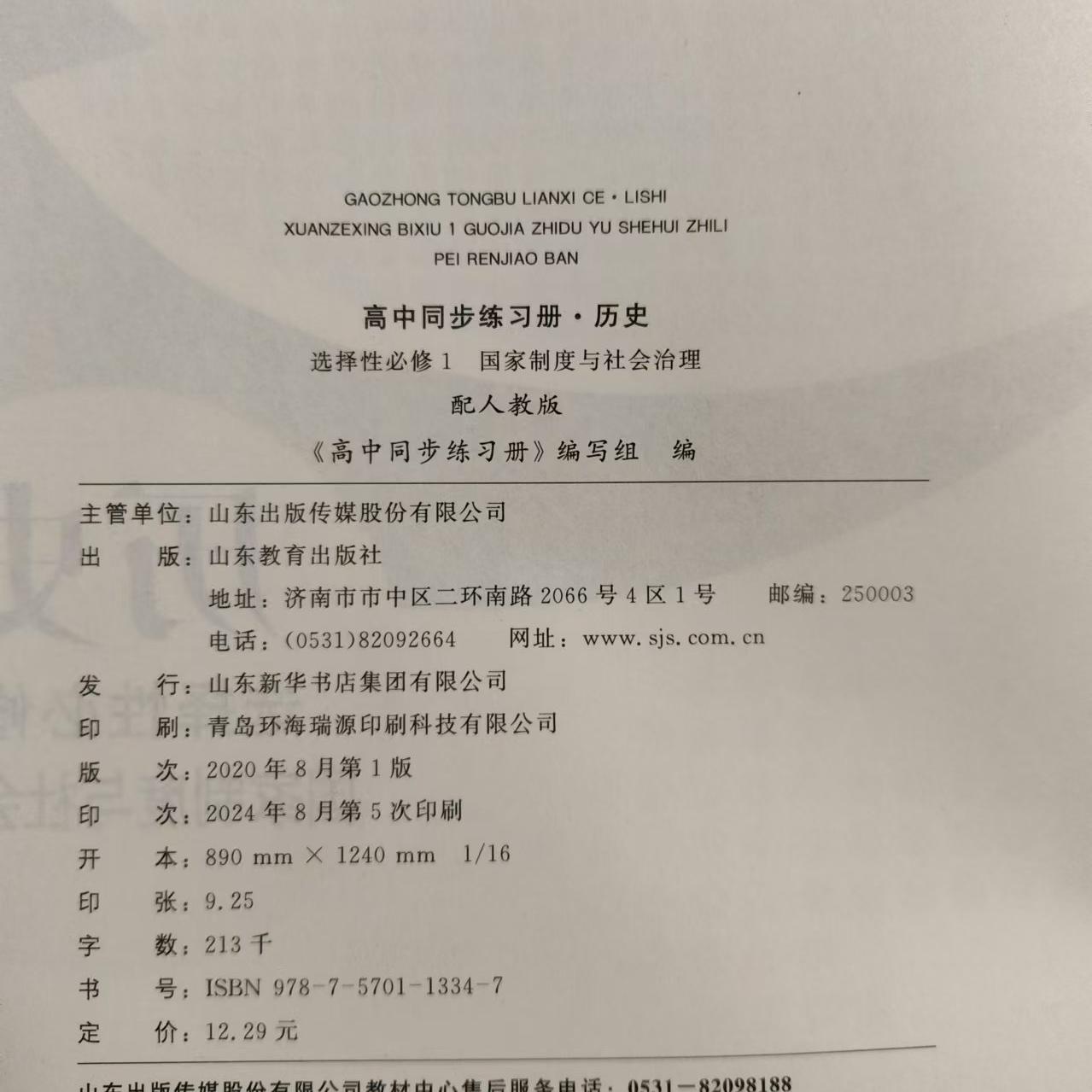 2024秋配人教版 社高二历史选修一同步练习册 高中同步练习册历史选择性必修1国家制度与社会治理山东教育出版