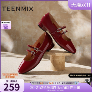 红色玛丽珍鞋 法式 百思图莫奈花园25秋新款 女单鞋 乔欣明星同款