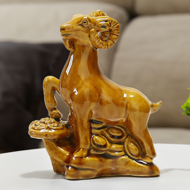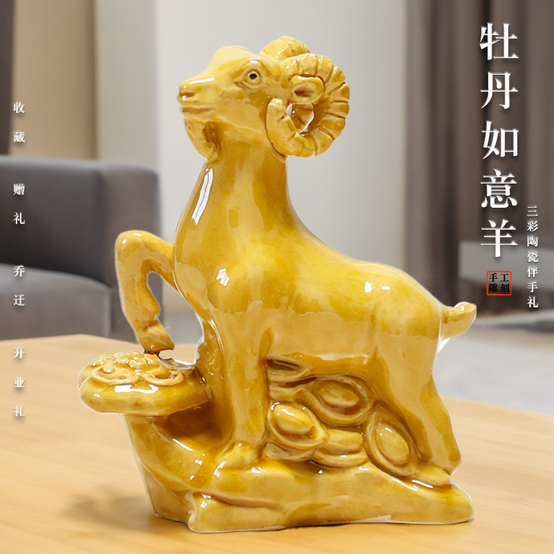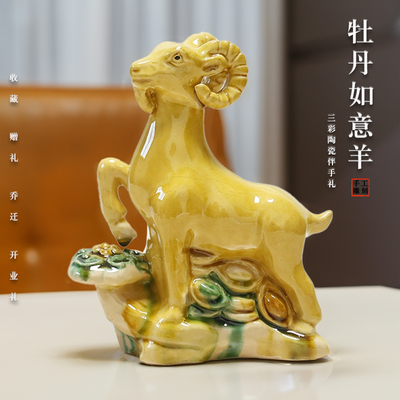 陶瓷羊摆件装 饰品工艺品礼物酒柜电视柜家居唐三彩生肖羊财源亨通