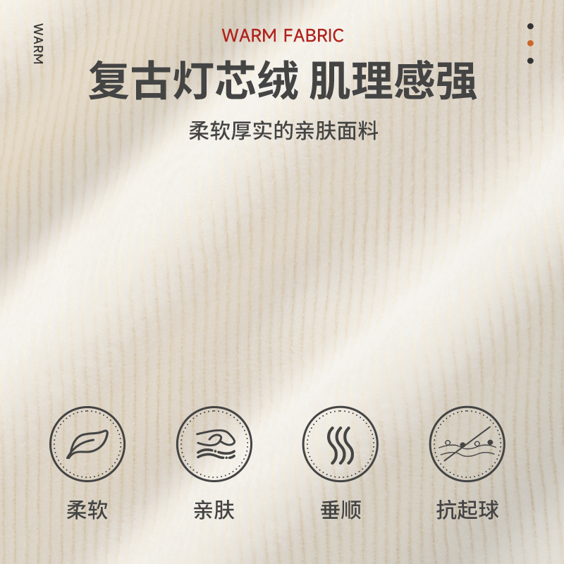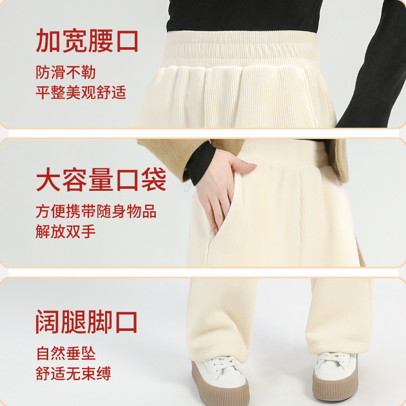 直筒阔腿裤 KMV真维斯加绒灯芯绒裤 子女2025秋冬加厚宽松高腰窄版