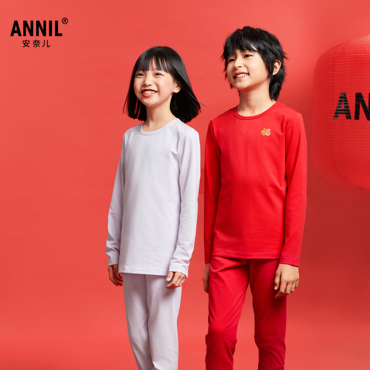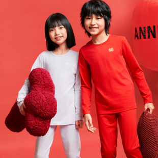 套装 男女童秋衣裤 安奈儿童装 2025春家居服中国风本命年 新年红