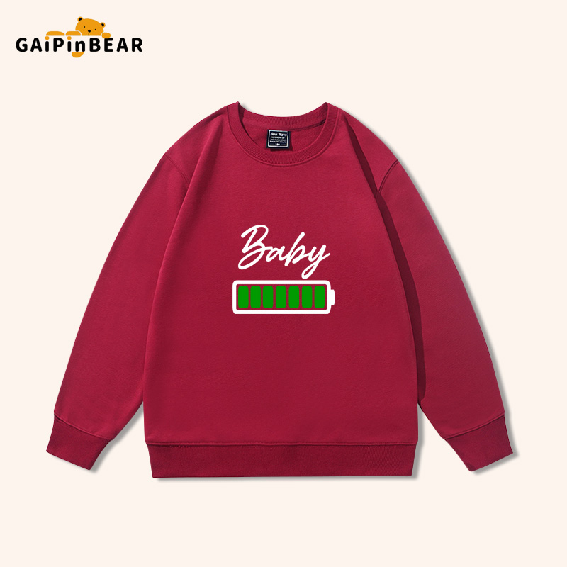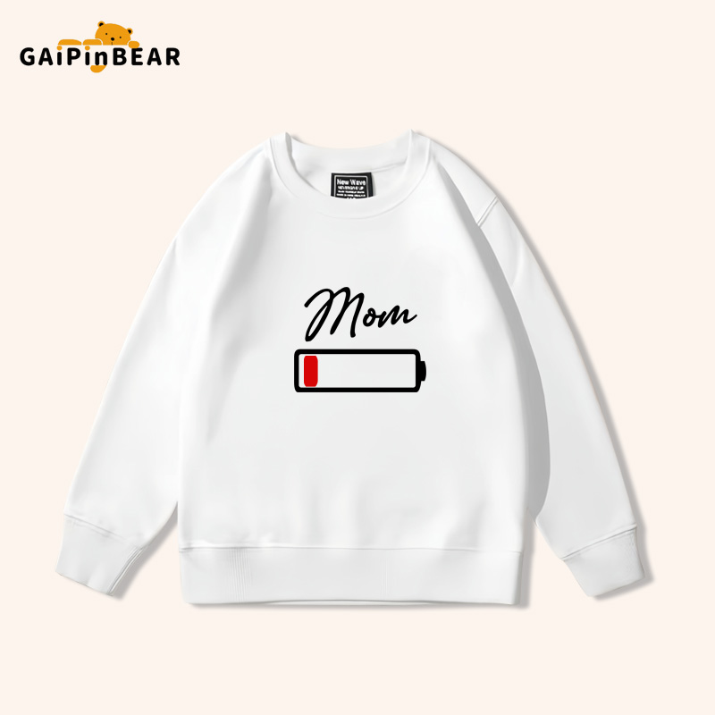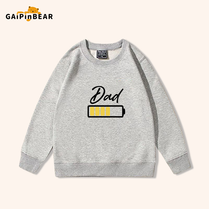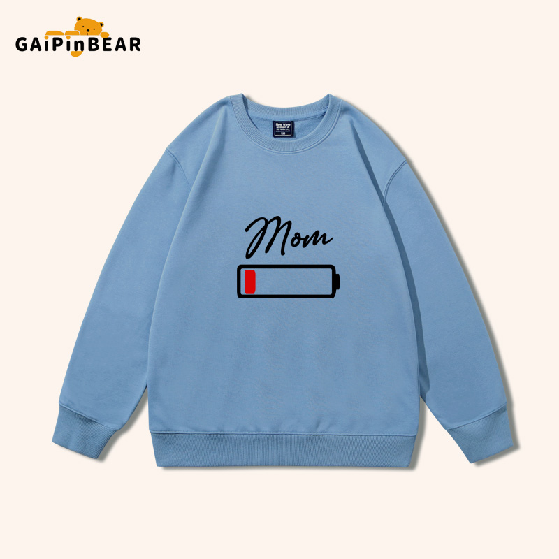 薄款 电池电量不足趣味亲子装 一家三口春秋衣服圆领卫衣男女儿童装