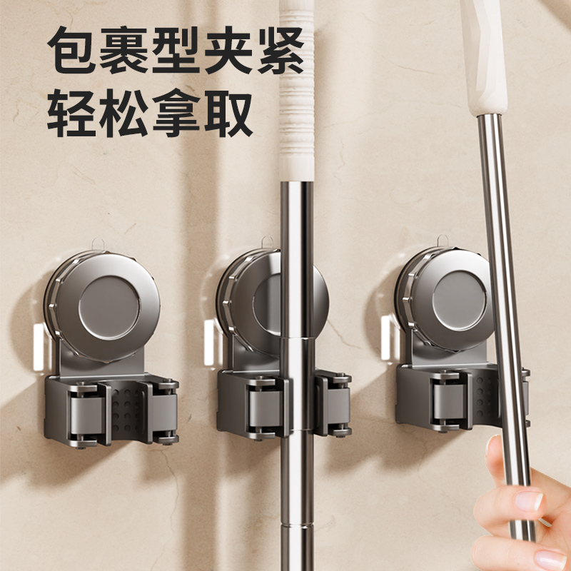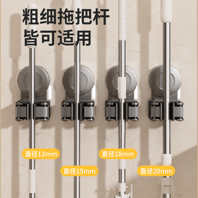 吸盘拖把架壁挂夹扫把挂钩免打孔卫生间浴室门后拖布扫把收纳架子
