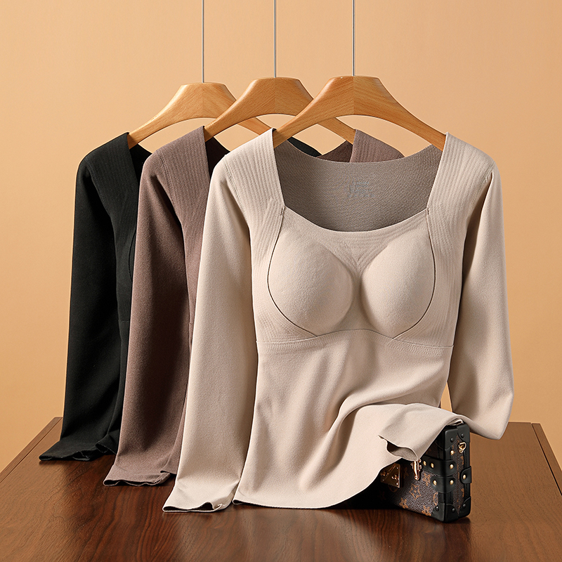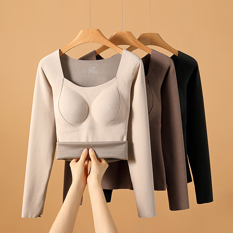 保暖内衣女加绒加厚冬季 上衣 石墨烯发热德绒带胸垫贴身内搭打底衫