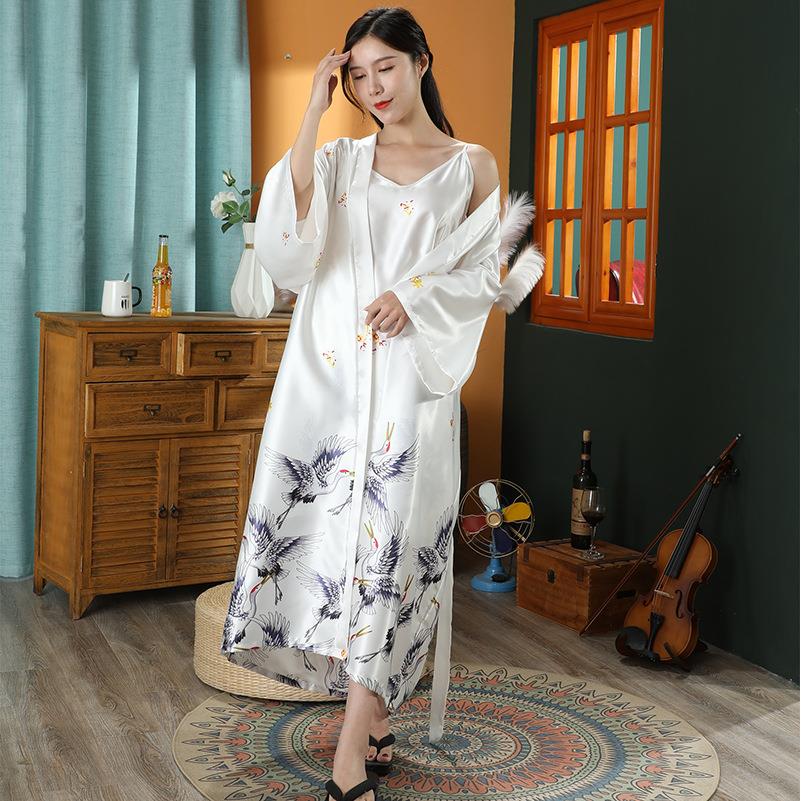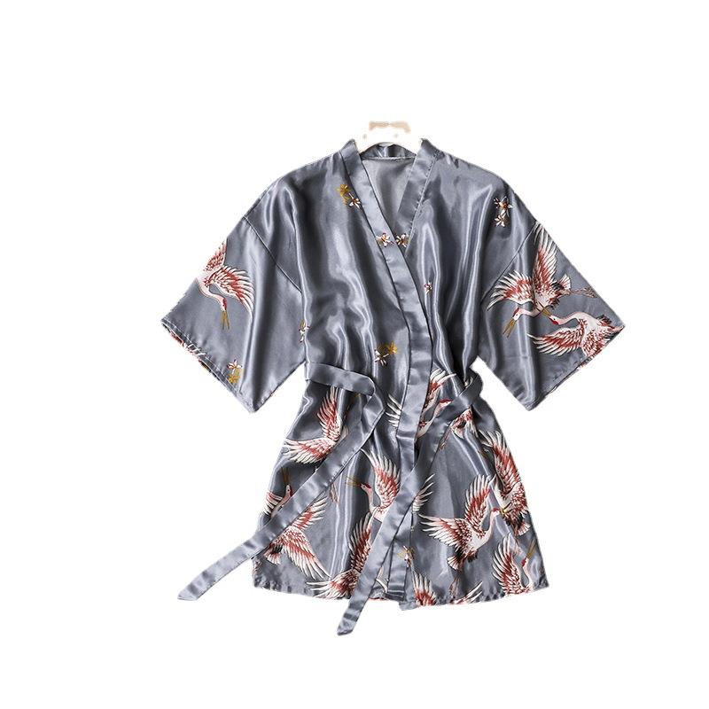 女浴袍新娘晨袍定制 丝绸仙鹤睡衣伴娘服中袖 女士睡袍新品 夏季
