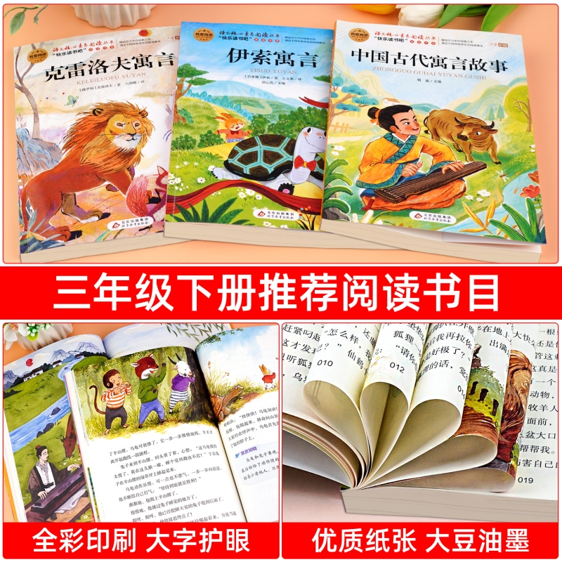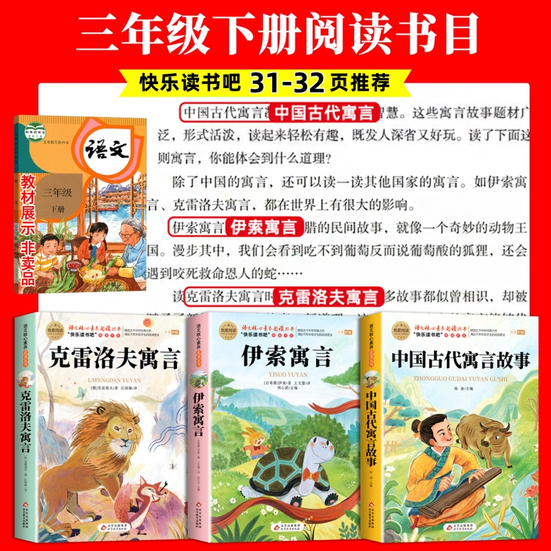 中国古代寓言故事伊索寓言全套3册三年级下册课外书必读正版 阅读3下学期非导读精选 书目克雷洛夫全集拉封丹快乐读书吧老师推荐