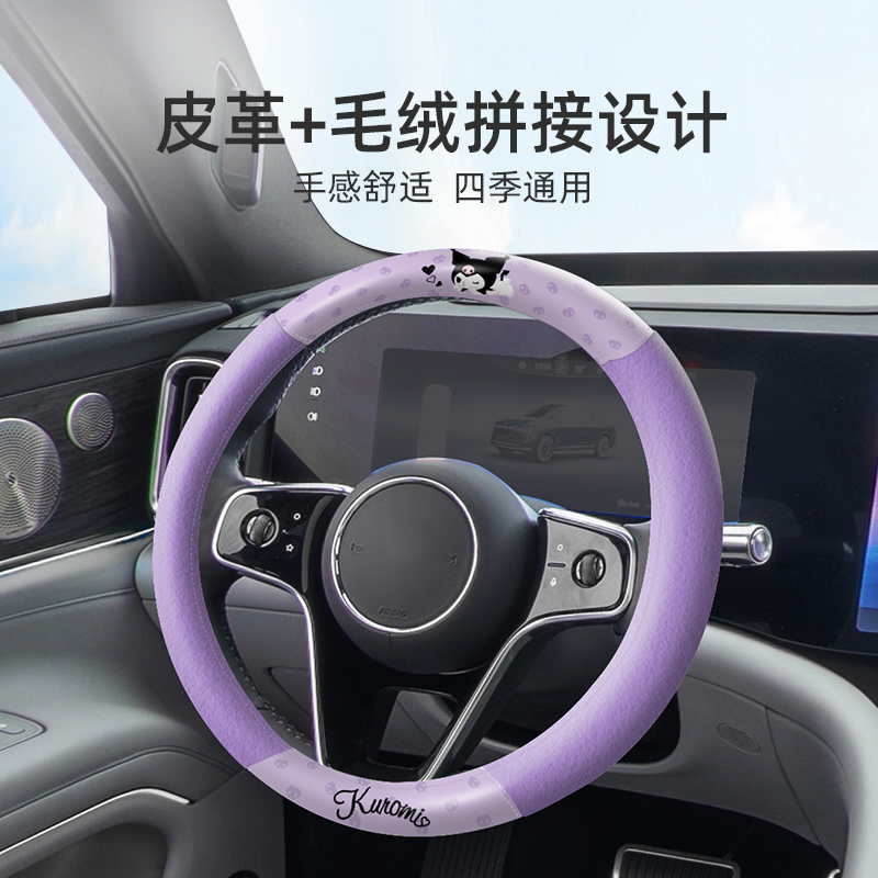 通用D型把套女可爱防滑冬季 库洛米卡通汽车方向盘套2025新款 四季