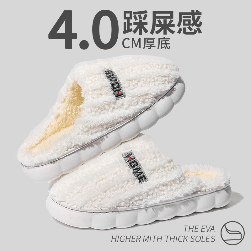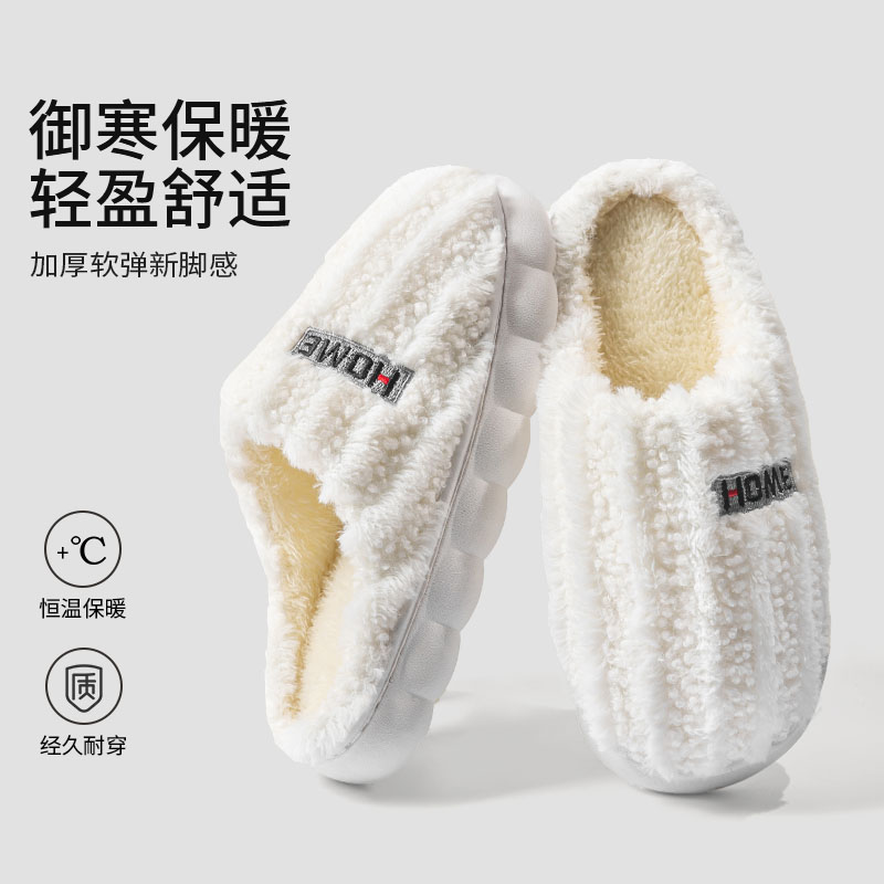 男 居家防滑毛绒加绒简约外穿拖鞋 加厚棉拖鞋 女士春秋冬季