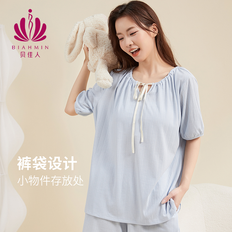 套装 贝佳人新款 短袖 宽松圆领家居服舒适短裤 女士睡衣BW532507 夏季