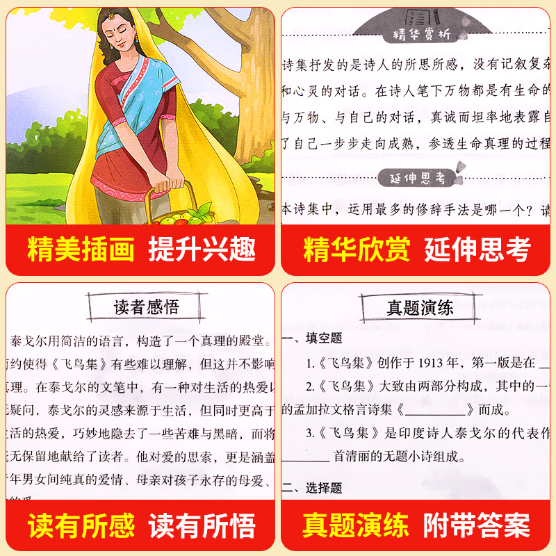 小学生现代诗精选诗集诗歌散文诗全集三四五六年级上册下册课外阅读书籍必读正版 全套2册 给孩子 中文版 新月集飞鸟集泰戈尔正版