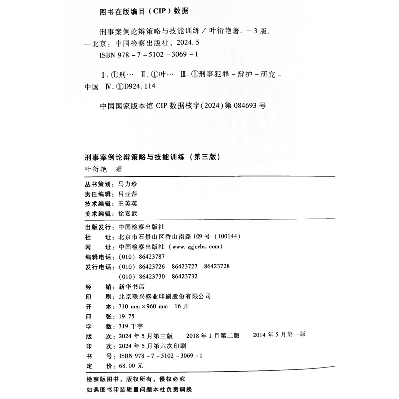 检察业务实训丛书 3版 叶衍艳 法庭论辩技巧公诉人论辩实务律师实务 社 2024新书 中国检察出版 刑事案例论辩策略与技能训练第三版