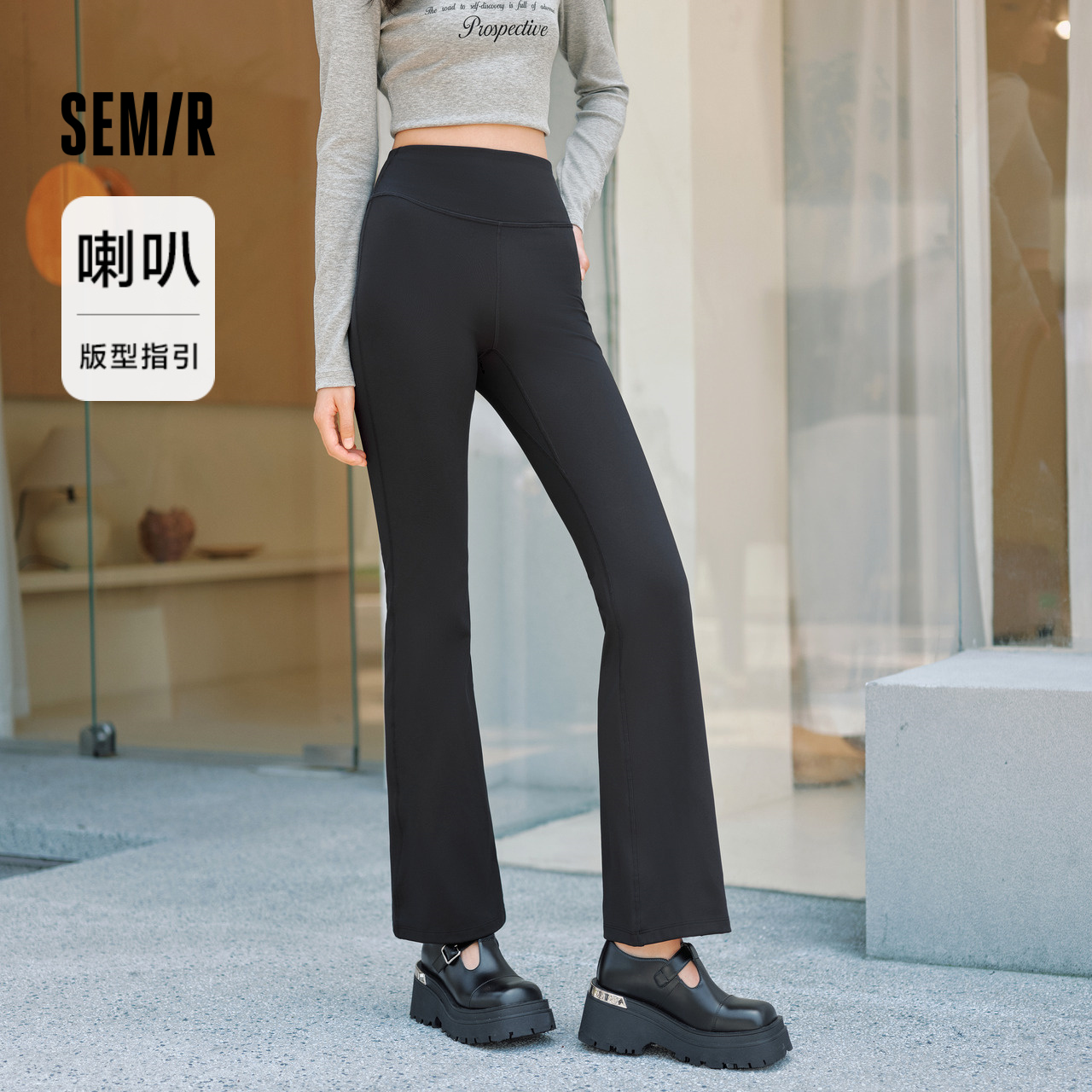 女士弹力喇叭裤 森马休闲裤 秋季 纯色简约风2025新款 百搭 女磨毛长裤