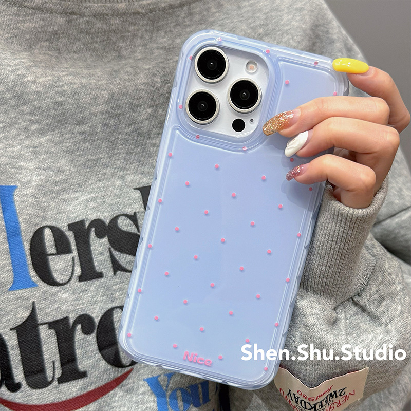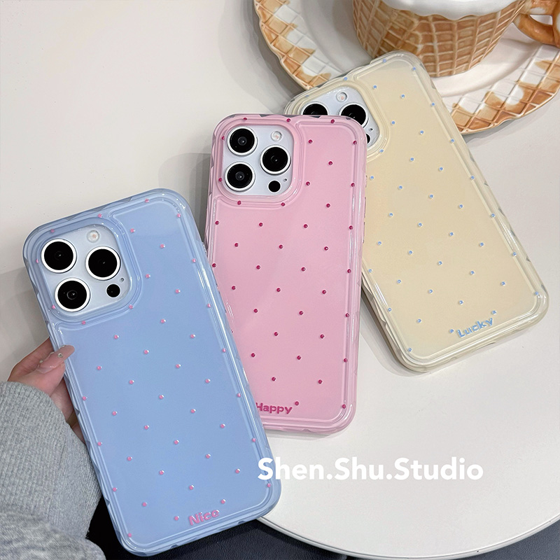 ins风韩系简约波点适用苹果16promax手机壳iphone14pro新款 11纯色13情侣14高级创意15全包 15pro软壳13pro女款