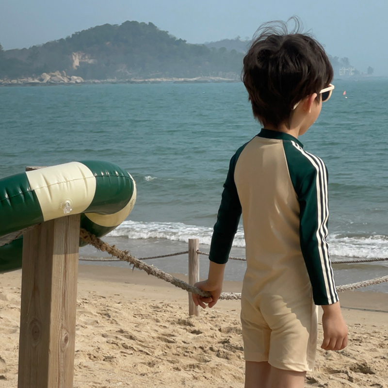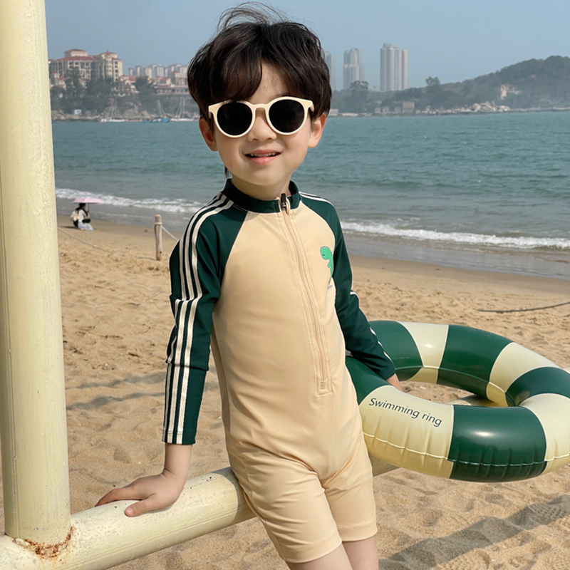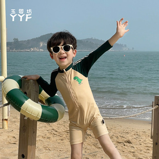 游泳衣速干 男孩海边韩版 玉婴坊男童泳衣夏中小童连体长袖 防晒泳装