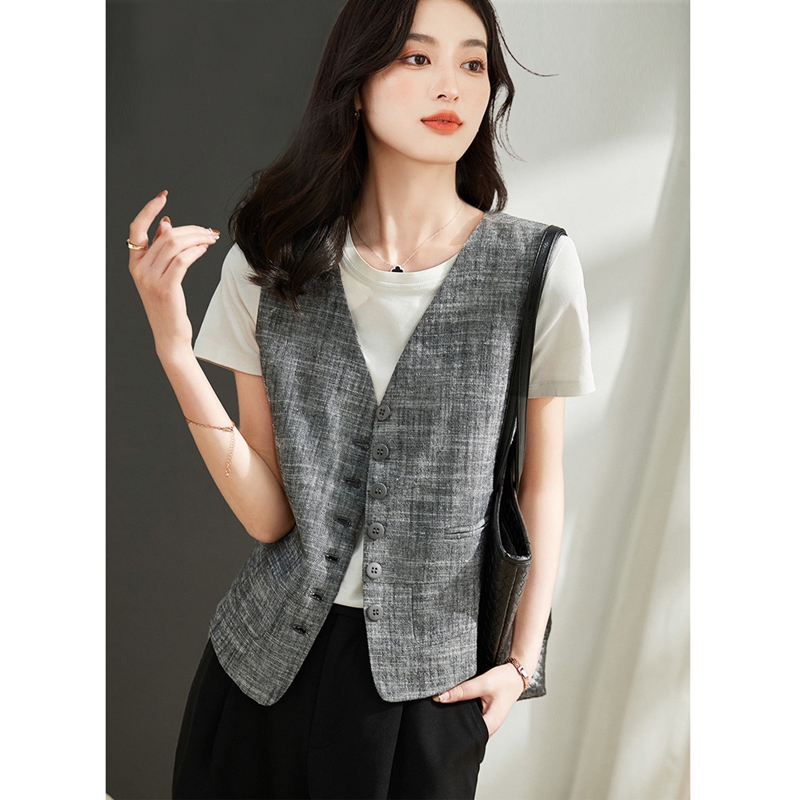 男士 坎肩外套 无领纯棉马甲春秋背心多口袋马夹中老年休闲宽松大码