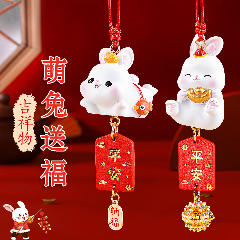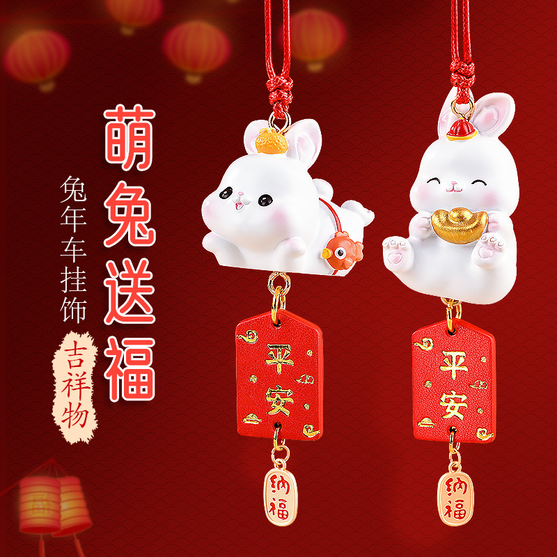 兔子汽车挂件本命年生肖车内吊饰网红车载饰品摆件女士高档车挂饰