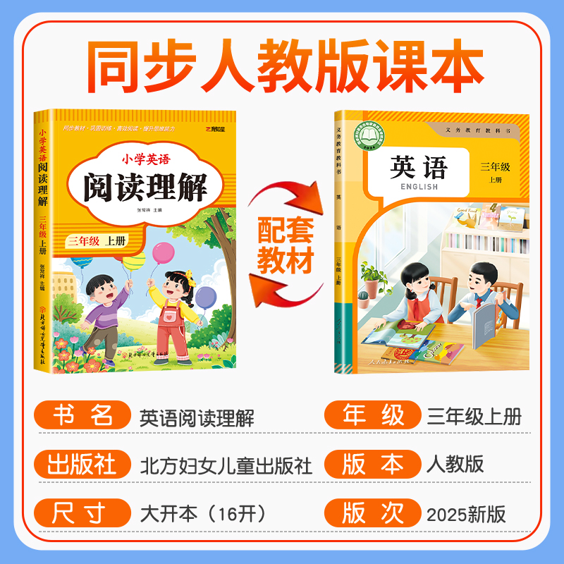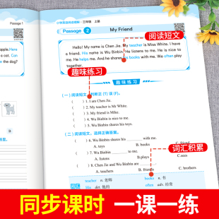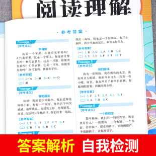 三年级上册英语阅读理解每日一练人教pep版 小学英语强化训练教材英语同步练习册专项训练课堂作业本小学生英语完形填空与阅读理解