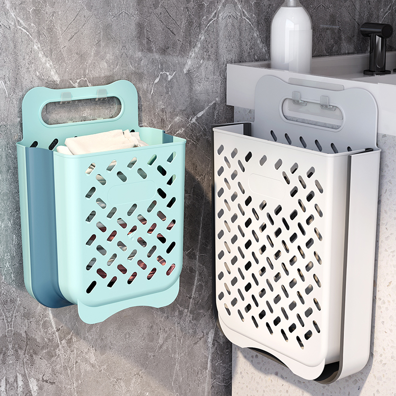 卫生间置物架浴室厕所折叠脏衣篮免打孔壁挂式 洗手间洗衣机收纳架