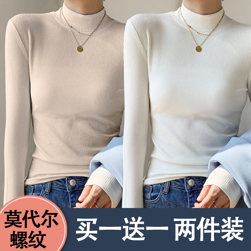 打底衫 修身 莱赛尔天丝T恤女亨利领长袖 紧身内搭上衣 Chapelle