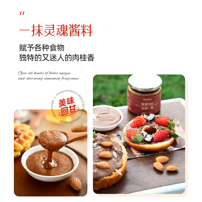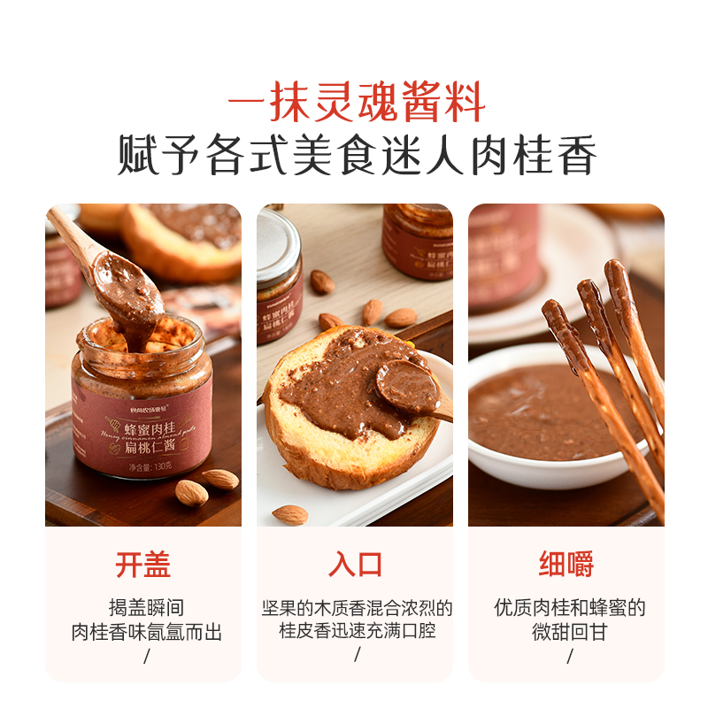 蜂蜜肉桂扁桃仁酱面包吐司抹坚果酱家用营养早餐烘焙健身沙拉酱汁