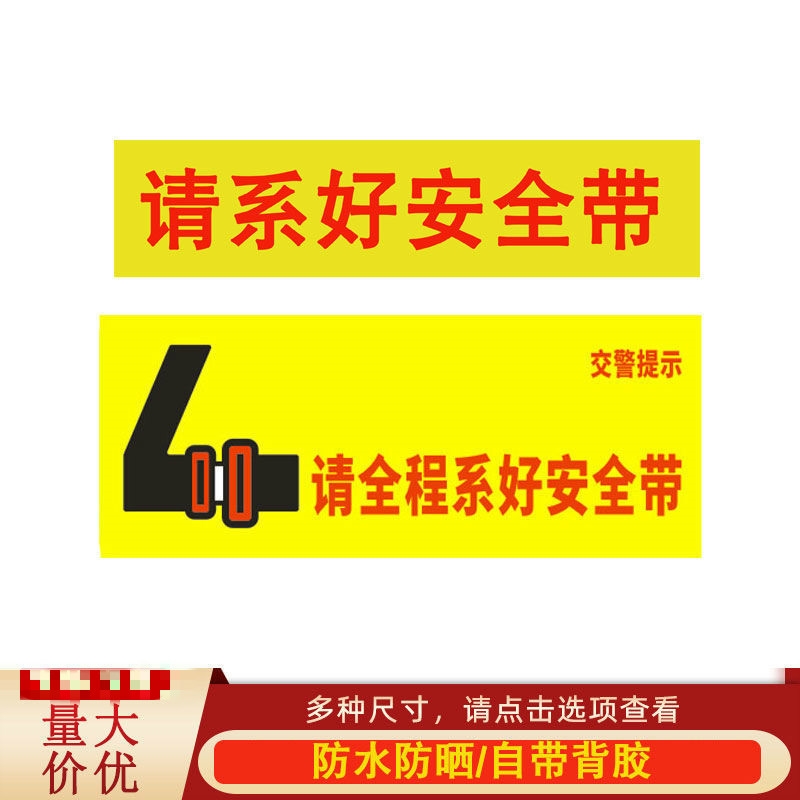 请全程系好安全带贴纸客车大巴车安全带提示贴可定制防水车贴车内