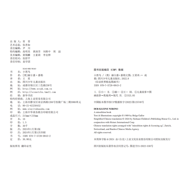 奥地利 社新华书店正版 赫尔嘉.嘉勒绘本 少儿动漫书四川少年儿童出版 图画书 小黑鸟
