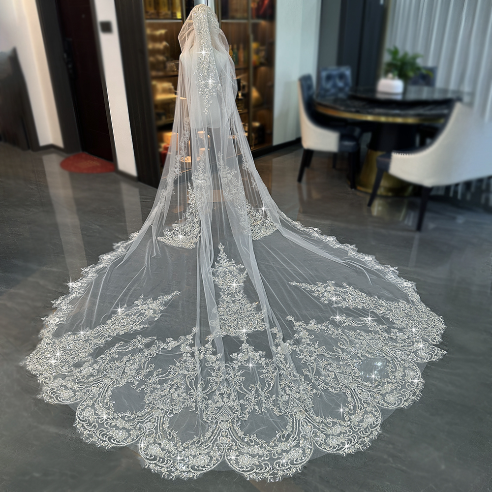 新娘结婚主婚纱头纱高级感重工珠绣纯手工头纱婚礼长拖尾头纱配饰