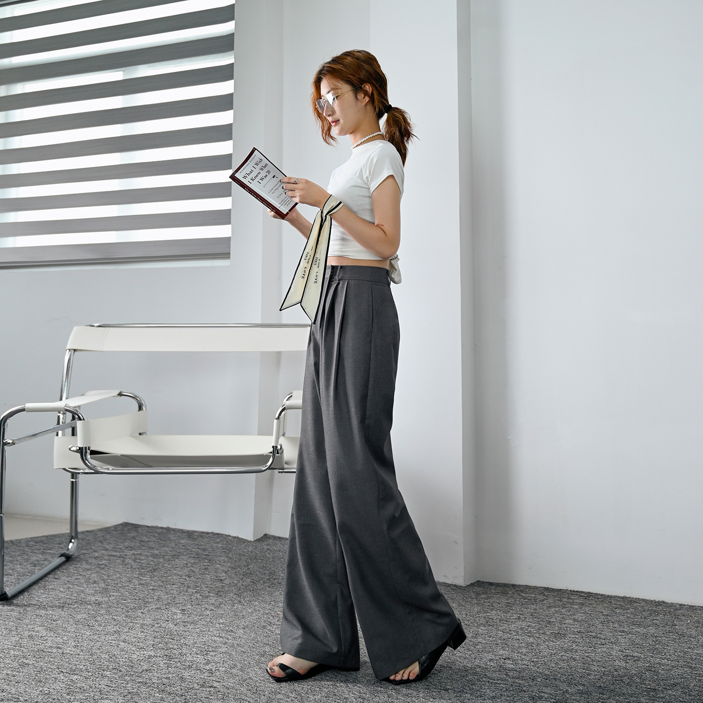 长裤 百搭宽松高腰垂感小个子松紧腰休闲西装 女初秋新款 灰色直筒裤
