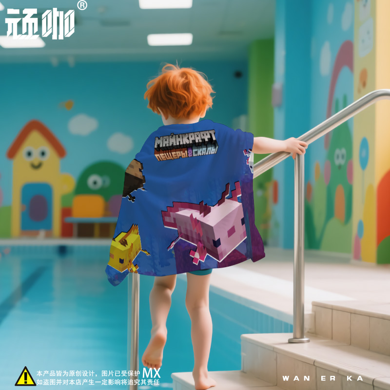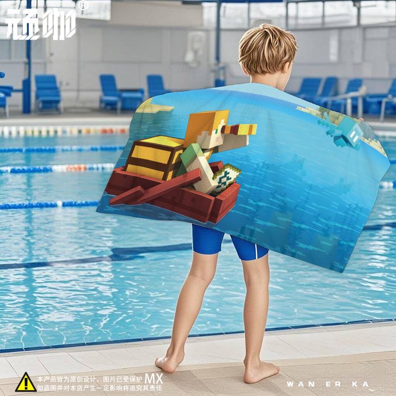 卡通创意毛巾洗澡巾我 世界游泳专用吸水毛巾游泳儿童海边沙滩巾