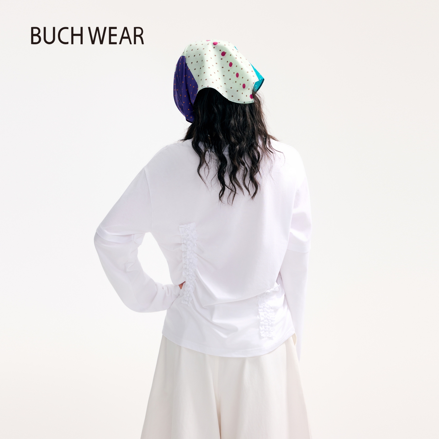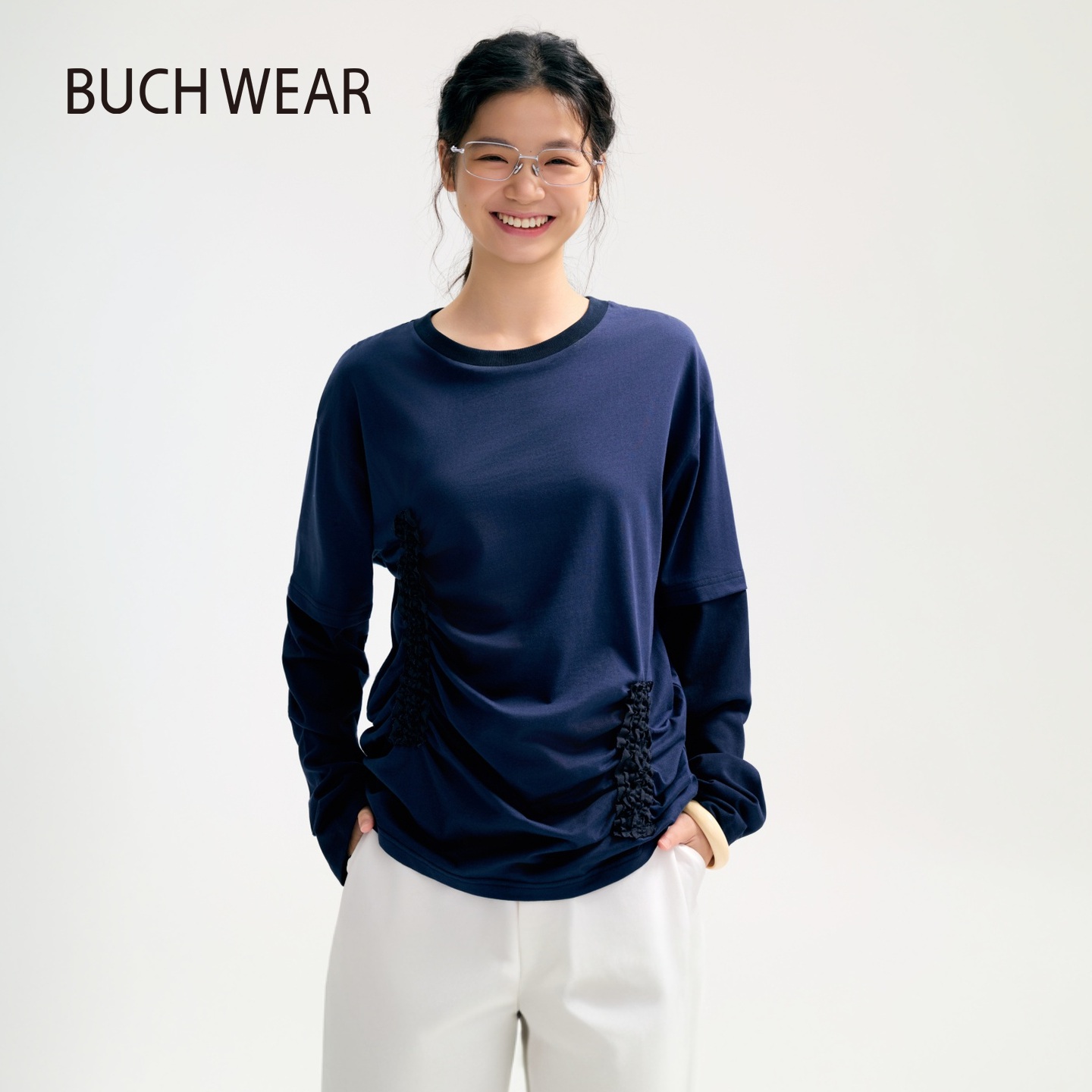 新款 T恤女2025夏季 棉质休闲拼接抽褶假两件T恤574835 WEAR BUCH