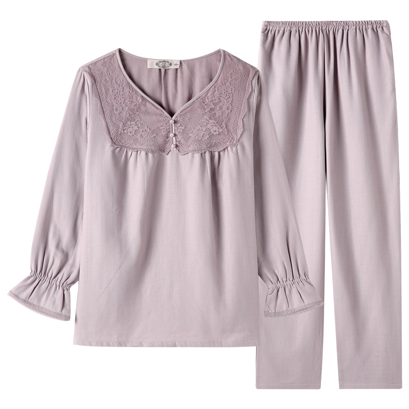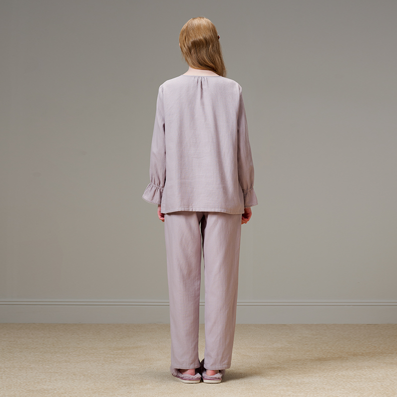 美标纯棉长袖 女秋冬柔软双层棉纱罗夫格全棉家居服可外穿 睡衣套装