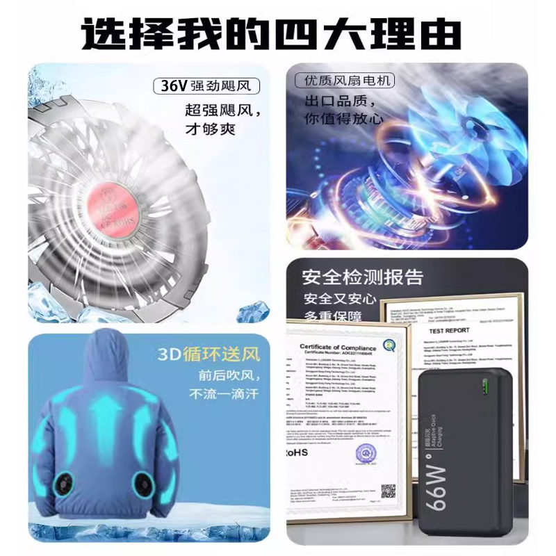 36V降温防晒空调服带风扇工作服夏季 户外制冷钓鱼服男女上班工人