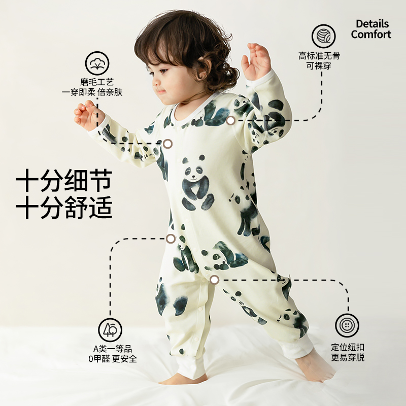 妙贝亲春秋纯棉婴儿连体衣A类卡通印花北欧风宝宝春装 哈衣爬服
