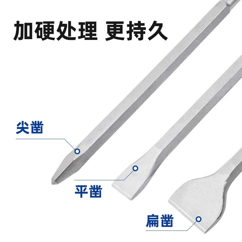 圆柄五坑凿子电锤电镐尖平扁凿铲瓷砖水泥地开槽地面合金钢凿子