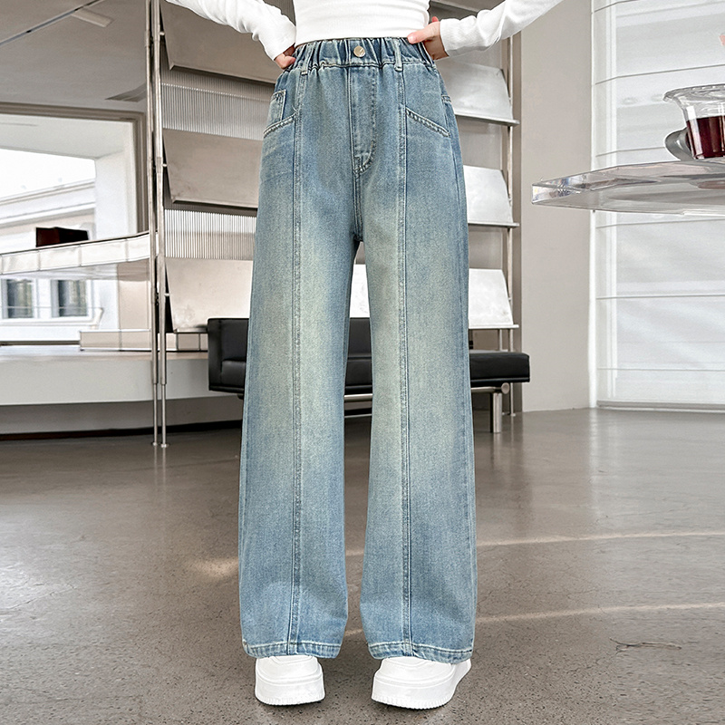 春秋款 子大童浅色秋装 2025新款 直筒宽松裤 儿童秋款 女童阔腿牛仔裤