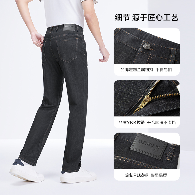 新款 2025春季 轻松通勤含莱赛尔水洗宽松直筒牛仔 牛仔裤 百斯盾男装