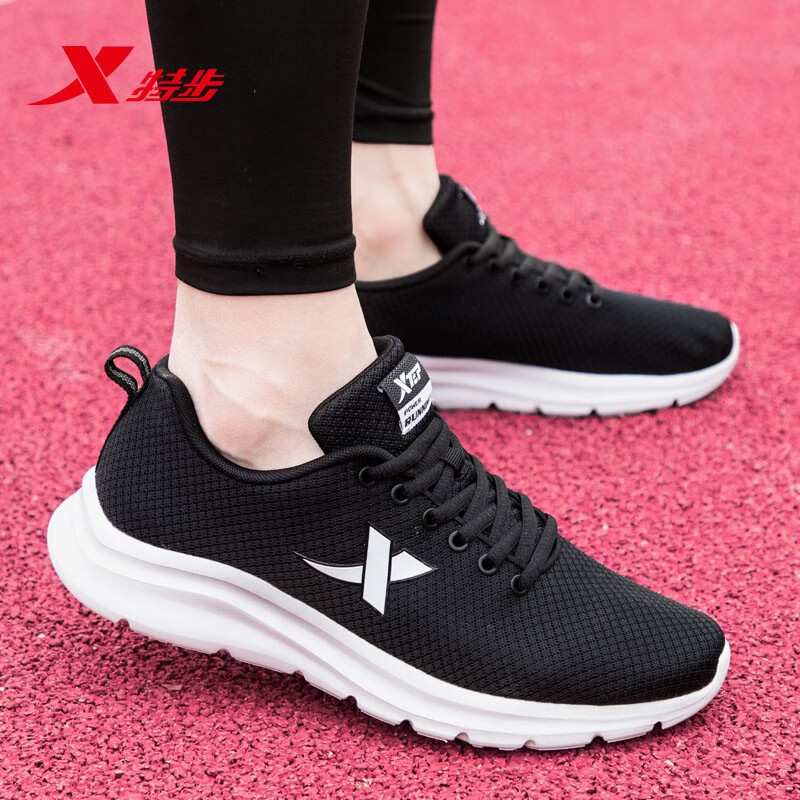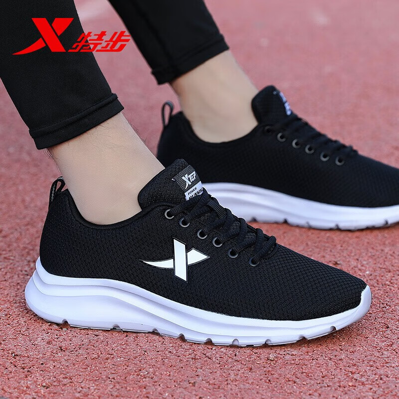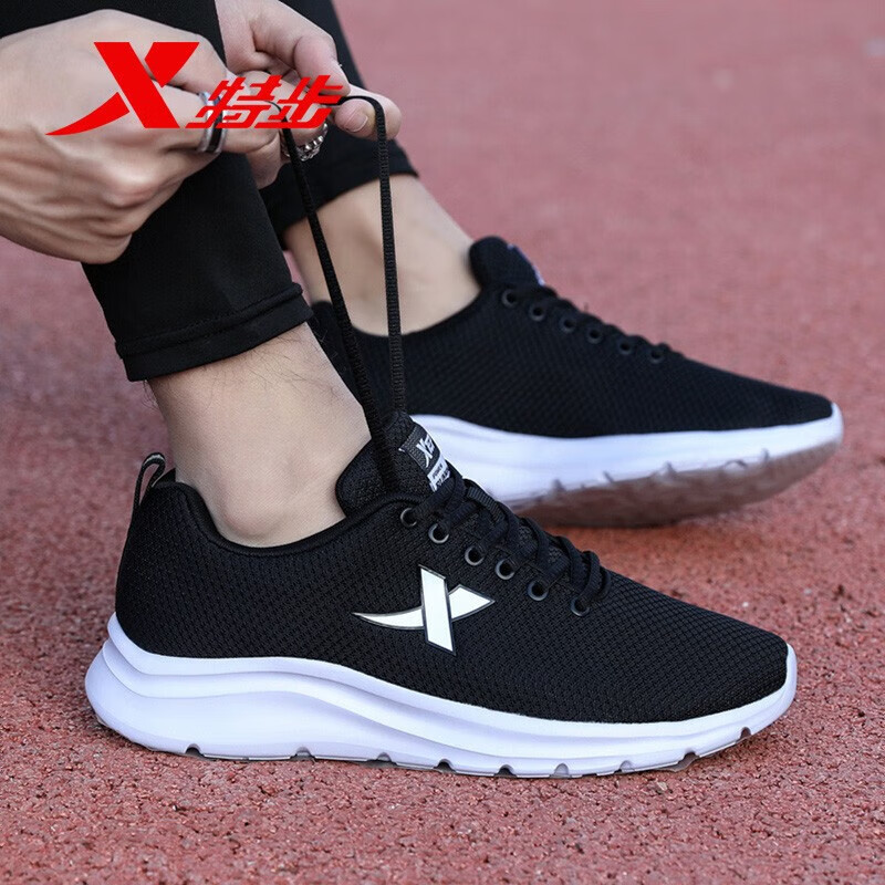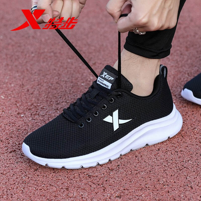 秋季 男2025新款 男士 网面鞋 特步男鞋 官方旗舰黑色减震跑步鞋 运动鞋
