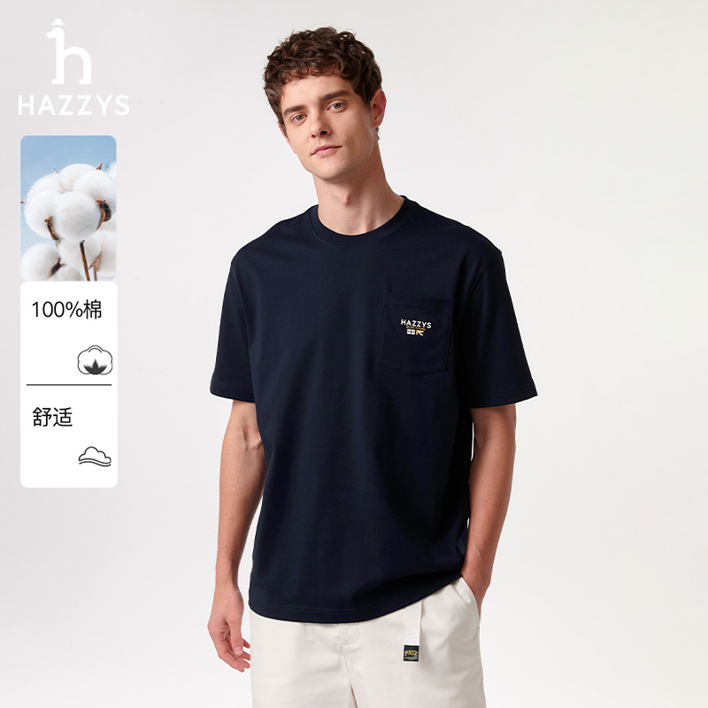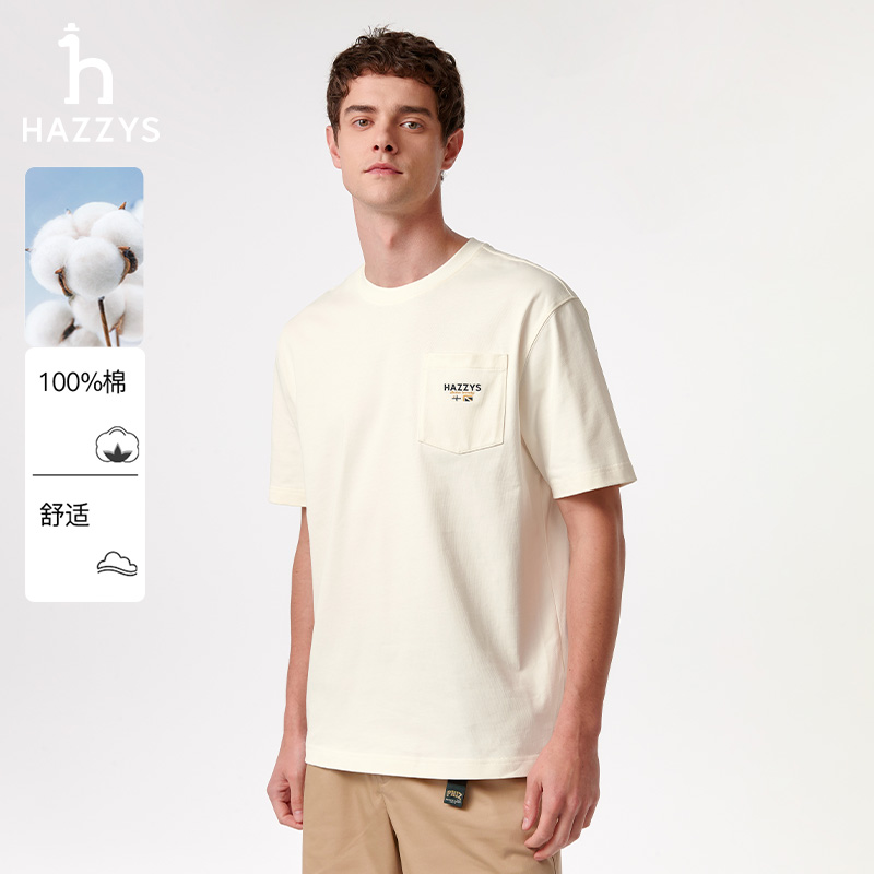 打底上衣潮 休闲圆领T恤纯色短袖 Hazzys哈吉斯奥莱25春夏新款 男装
