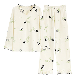 2025新款 猫人纯棉睡衣女春秋款 套装 长裤 套头高级复古风家居服 长袖