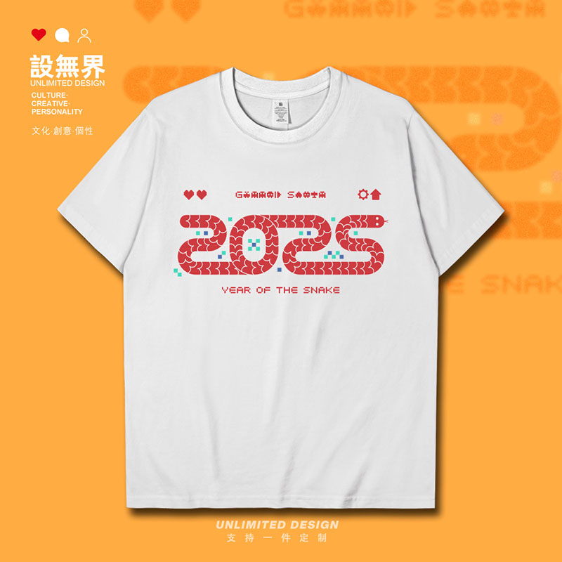 2025蛇年新春贪吃蛇电子复古游戏创意本命年短袖 无界 T恤男女夏设